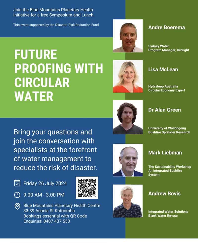 The Blue Mountains has been declared a natural disaster area six times in five years. We are actioning research and providing communication networks, resources and opportunities to learn how to reduce the risk of disaster, including creating a Disaster Risk Reduction Demonstration site at the Planetary Health Centre. We take a long term approach to reducing disaster risk by working together bioregionally, and globally, to restore the health of our planet. In the short term we respond to immediate threats by actioning the latest research and providing resources to facilitate urgent adaptation.