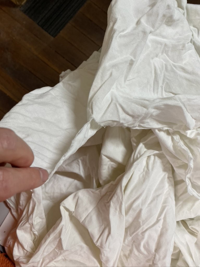 My grandmother lived through the war and was extremely careful to not waste anything. I still have her little rolled up ends of fabric that she kept whenever she finished a sewing project. I also have a few of our old cotton sheets that had worn out and ripped.
