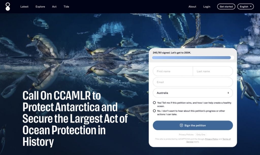 I added my name to the petition urging Joe Biden, (President of the United States), Emmanuel Macron (President of France), Olaf Scholz (Chancellor of Germany), Ursula von der Leyen (President of the European Commission), Vladimir Putin (President of Russia), Xi Jinping (President of China), and other leaders from CCAMLR member nations to protect Antarctica’s waters.