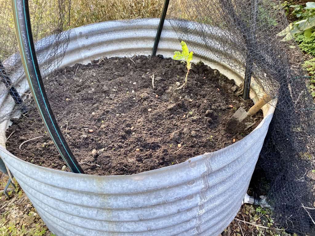 Both the broad beans, and the peas I planted yesterday, add Nitrogen to the soil. It’s a fertiliser that’s encountering global shortages at the moment, but can be added naturally to soil by planting legumes. With peas and broad beans I’m also ensuring availability of plant-based proteins for many yummy meals to come.