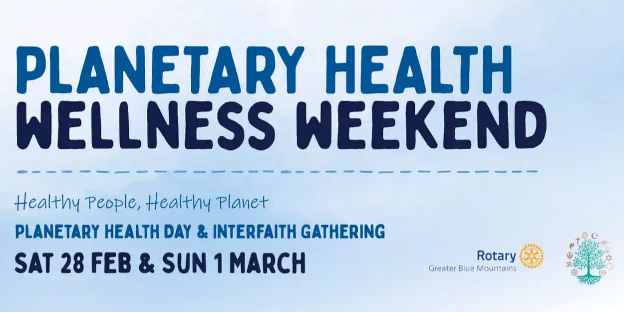 Blue Mountains Planetary Health Centre 33-39 Acacia St, Katoomba, NSW, AustraliaPlanetary Health Wellness Weekend: Healthy People, Healthy Planet The annual Blue Mountains Planetary Health Day and Blue Mountains Interfaith Gathering, at the Blue Mountains Planetary Health Centre in Katoomba. Saturday 28 Feb – Sunday 1 March 2026 Explore physical, mental, spiritual and emotional health in a weekend of community and Read more…